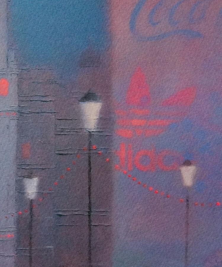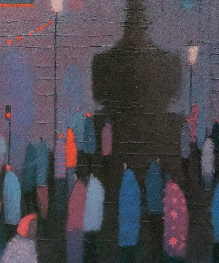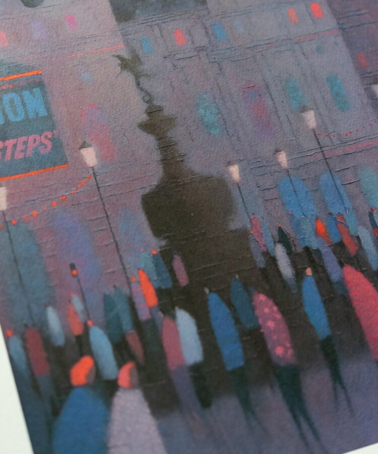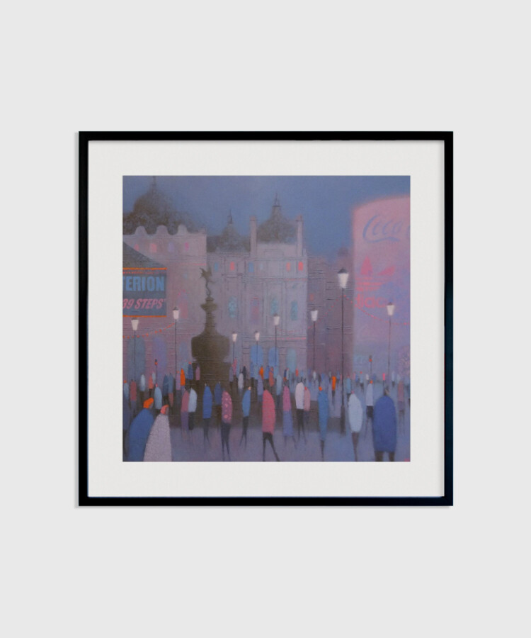 イギリスのアーティスト、エマ・ブラウンジョンによる「Eros」のポスター。雨の夜のロンドン、ピカデリー・サーカスを描いています。
