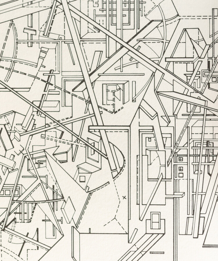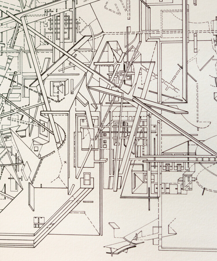 ポーランド出身の建築家 ダニエル・リベスキンドによる1979年の連作の一枚「Micromega 6」のポスター。