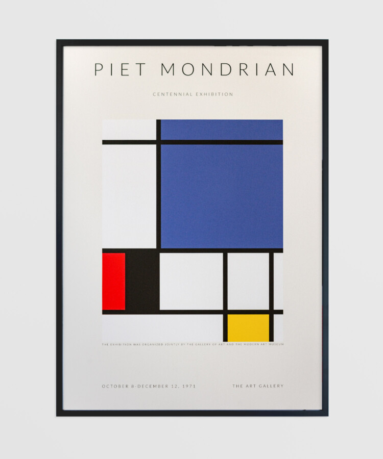 オランダの抽象画家ピエト・モンドリアンによる「Centennial Exhibition」のポスター。